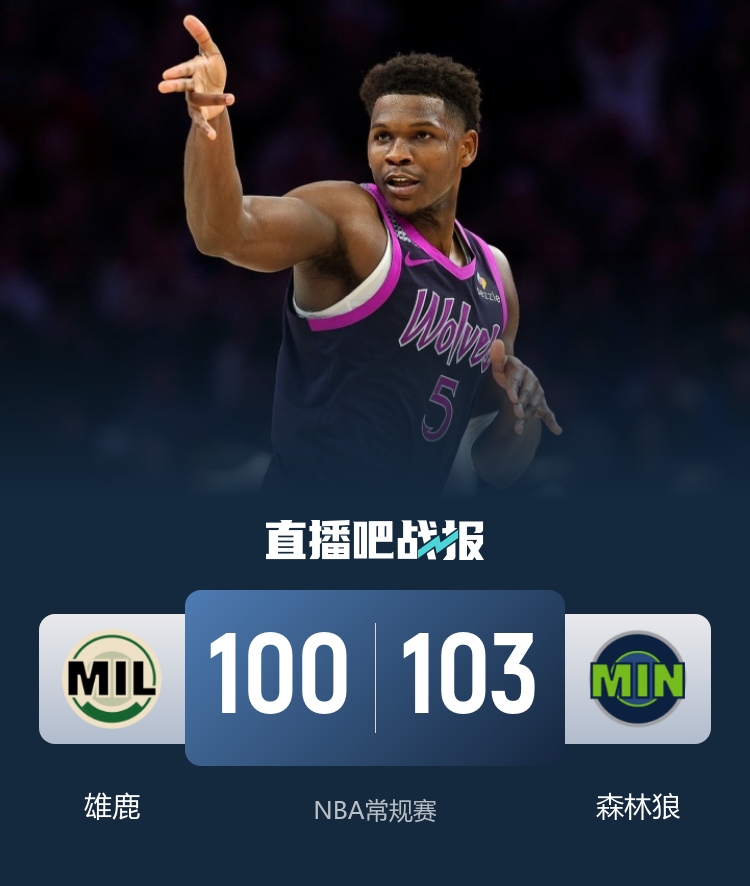 12月22日讯 NBA常规赛,森林狼今日迎战雄鹿,前者上场比赛战胜雷霆,后者遭遇两连败,此役字母哥和贝兰热缺战。